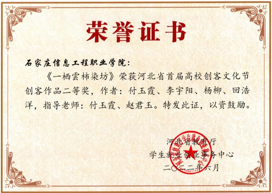 近日,在2022第三届京津冀创客峰会暨河北省首届高校创客文化节上,YABO鸭脖官网推荐的《一栖雲柿染坊》项目获得二等奖,《“与光”万物有灵系列文创作品》《百年红船》两个项目获得三等奖。