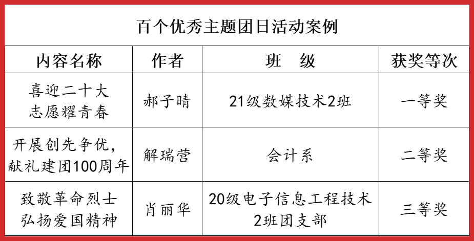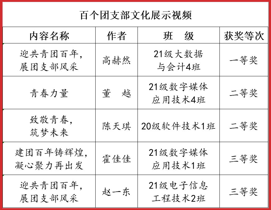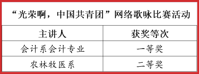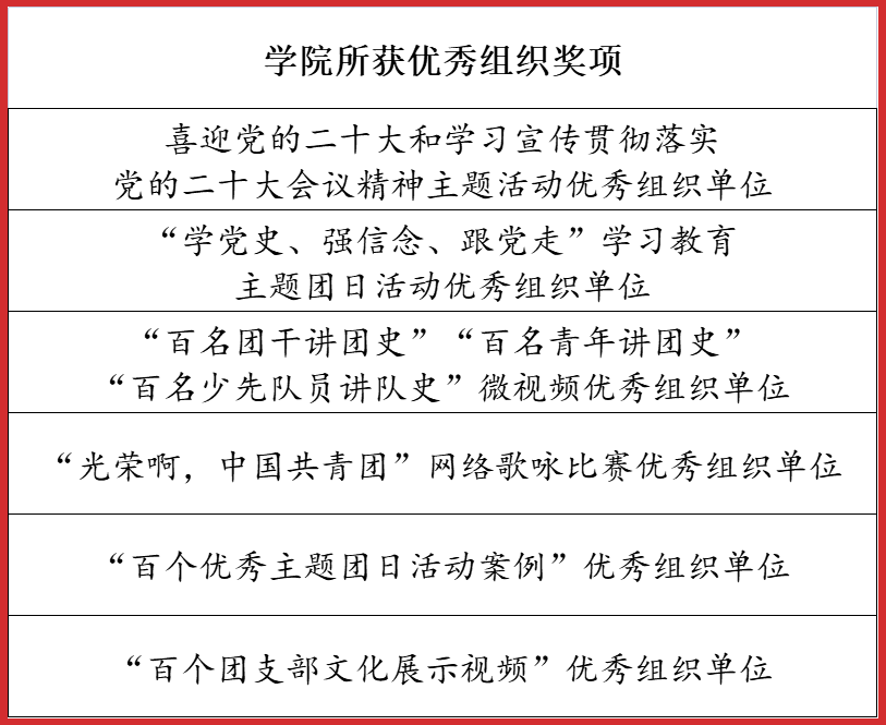 2022年4月——12月,市委教育工委在全市教育系统开展了庆祝建团100周年主题系列活动,YABO鸭脖官网师生在活动中喜获佳绩,荣获一等奖5项,二等奖6项,三等奖3项。学院荣获优秀组织奖6项。