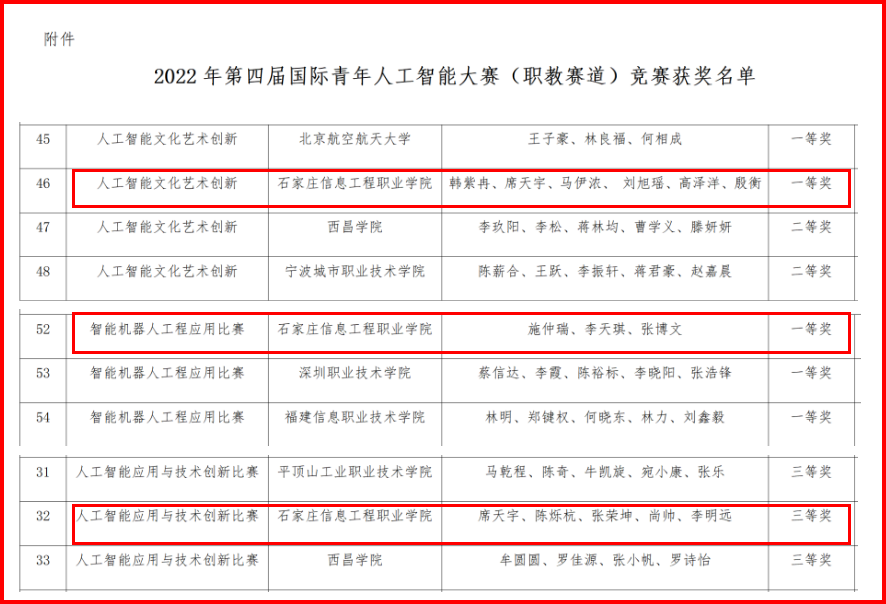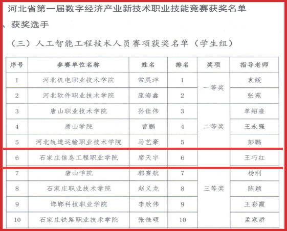 近日,2022年第四届国际青年人工智能大赛(职教赛道)、2022年河北省行业职业技能竞赛河北省第一届数字经济产业新技术职业技能竞赛、2022金砖国家技能发展与技术创新大赛(河北赛区选拔赛)等多项竞赛结果陆续公布,YABO鸭脖官网计算机应用系师生组成的参赛团队在三项竞赛七个赛项中喜获佳绩,荣获一等奖2项、三等奖5项。