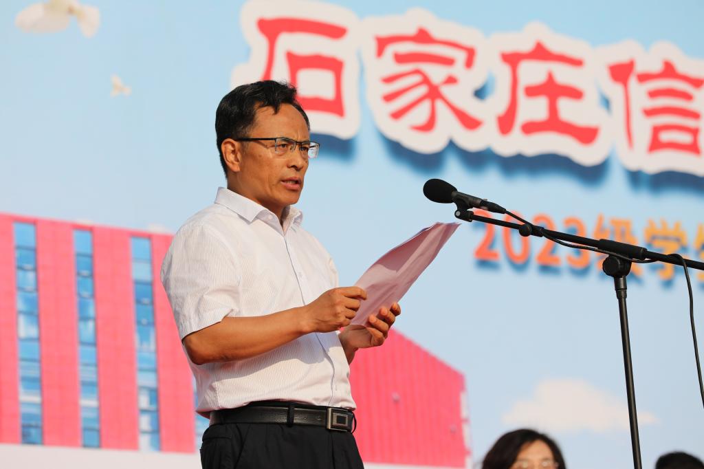 许征程代表全院教职员工欢迎2023级新生加入信工大家庭。他饱含深情地说,在学校全力建设“双高”院校、开启高质量发展新征途的重要时刻,感谢同学们信任信工、选择信工,以梦想相托,将最好的年华交付于学校。学校将尽一切努力,为同学们的学习成长提供全方位服务,不负每一位同学的情意与信赖。