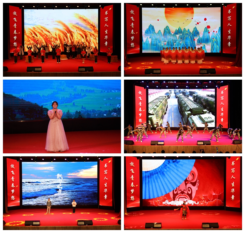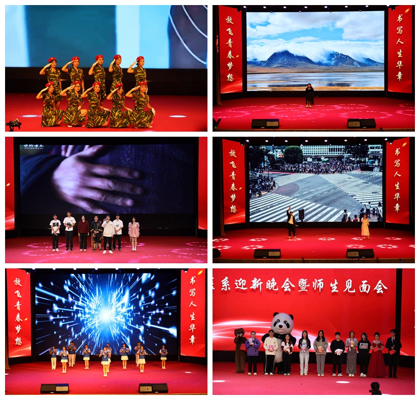 晚会在农林牧医系育人成果展示和老师们的寄语视频中拉开了帷幕。经典诵读《希望的田野》展现了党和国家对“三农”问题的高度重视,体现了坚持把解决好‘三农’问题作为全党工作重中之重,举全党全社会之力推动乡村振兴的决心;舞蹈《万疆》通过优美的民族舞蹈表达了对祖国山河的热爱与眷恋;一首《漂洋过海来看你》回味了青春的纯真过往;舞蹈《中国军魂》体现了中国军人坚定、豪迈、一往无前的品质;歌曲《飘向北方》唱出了现代大学生的青春活力和理想追求;国粹艺术《川剧变脸》展现了中国文化的深厚底蕴和艺术魅力;互动游戏更是将晚会一次次推向高潮;舞蹈《军中姐妹》让观众体会到女兵的英姿飒爽;一首《火红的萨日朗》展现了当代大学生的激扬和热情;小品《时间都去哪儿了》用幽默风趣的表演方式,演绎了时间从指间无声地流逝,提醒同学们要珍惜时间,学会感恩;歌曲《泡沫》让全场观众回味了美好的中学时光,并对大学生活有了新的憧憬;晚会在充满青春活力的啦啦操《星辰变》表演中落下帷幕。