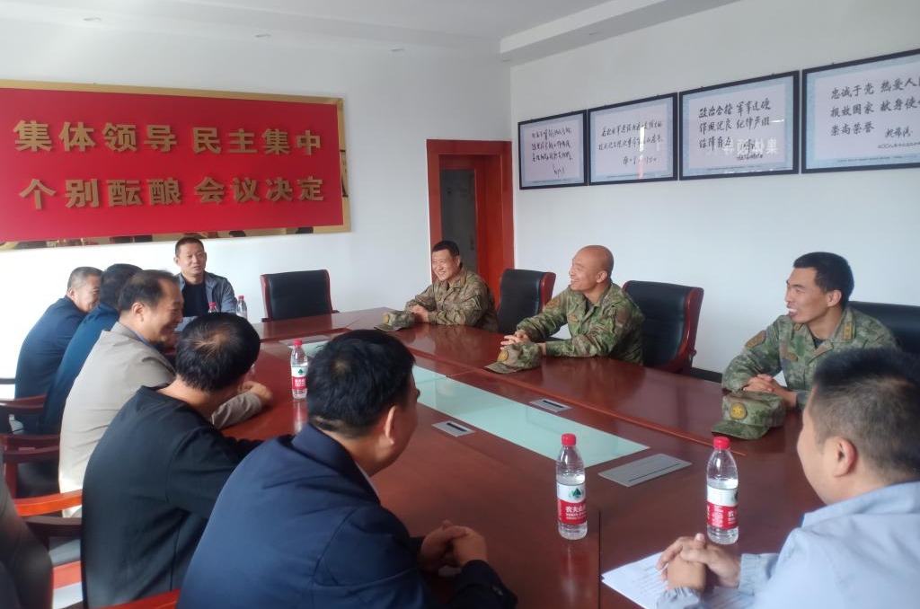 10月18日上午,YABO鸭脖官网驻转角沟村历任驻村第一书记王志明、宋占修、智庆谦,东王坡乡副乡长李增友、转角沟村党支部书记安建国及现任驻村工作队队员到驻地部队召开共建座谈会。
