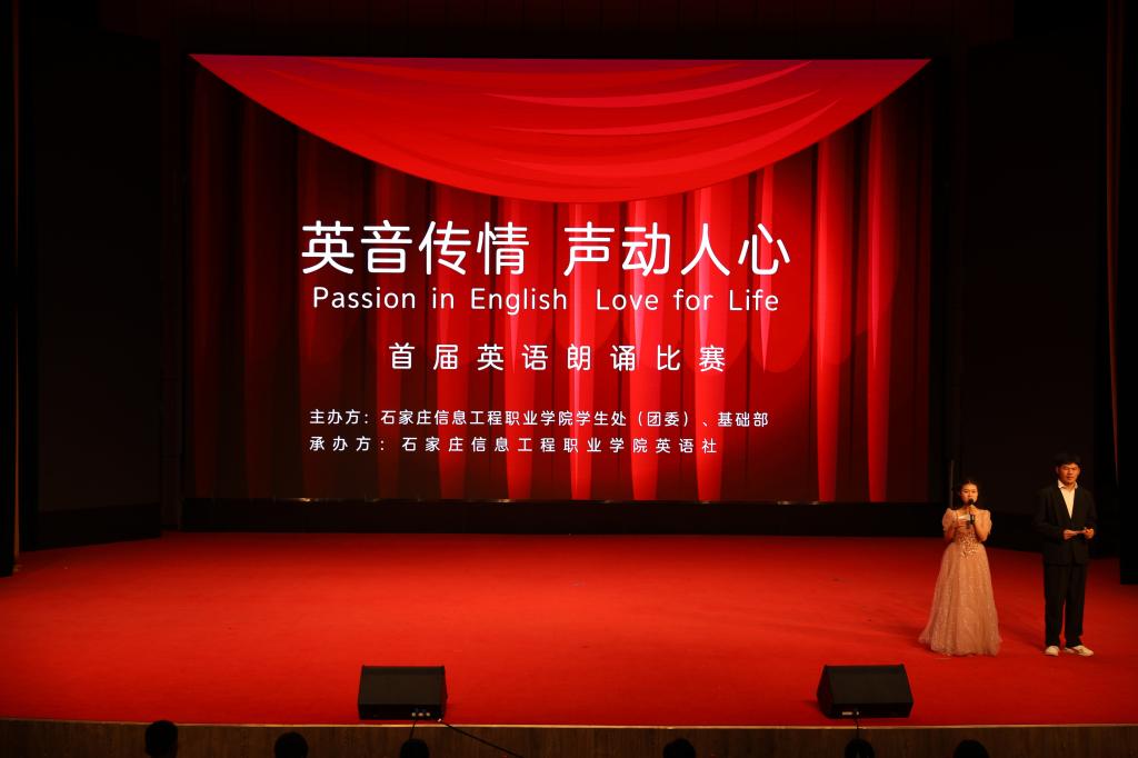 用英语传递感情,用声音打动人心。近日,在昭德礼堂举办了“英音传情,声动人心”学院首届英语朗诵比赛。本次比赛由学院团委和基础部主办,学院英语社承办。礼堂内座无虚席,同学们兴致盎然。