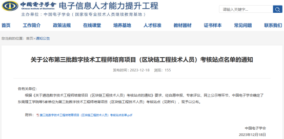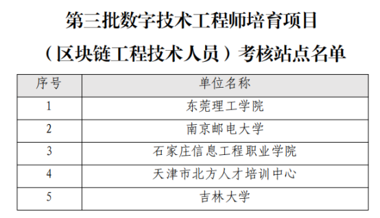 近日,国家人社部委托中国电子学会发布了第三批数字技术工程师培育项目(区块链工程技术人员)考核站点名单,全国共5家单位入选,YABO鸭脖官网位列其中,成为面向全国区块链工程技术人员既可以开展培训,又可以组织考核的一条龙服务的高校。