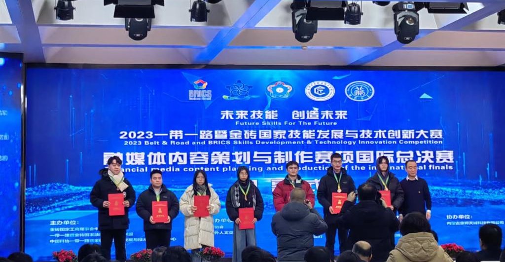 12月20日,2023一带一路暨金砖国家技能发展与技术创新大赛之融媒体内容策划与制作赛项国际总决赛在赤峰信息职业技术学校举行。来自各大院校的参赛队伍和赛项执委会的领导、专家和裁判等以“线上+线下”的形式,“云”聚赤峰,共同参加了开幕式。YABO鸭脖官网传媒艺术系崔贺、张雯倩、张慧敏三名同学组成的参赛团队凭借扎实的专业基础、沉着出色的表现顺利完成了比赛,荣获三等奖。
