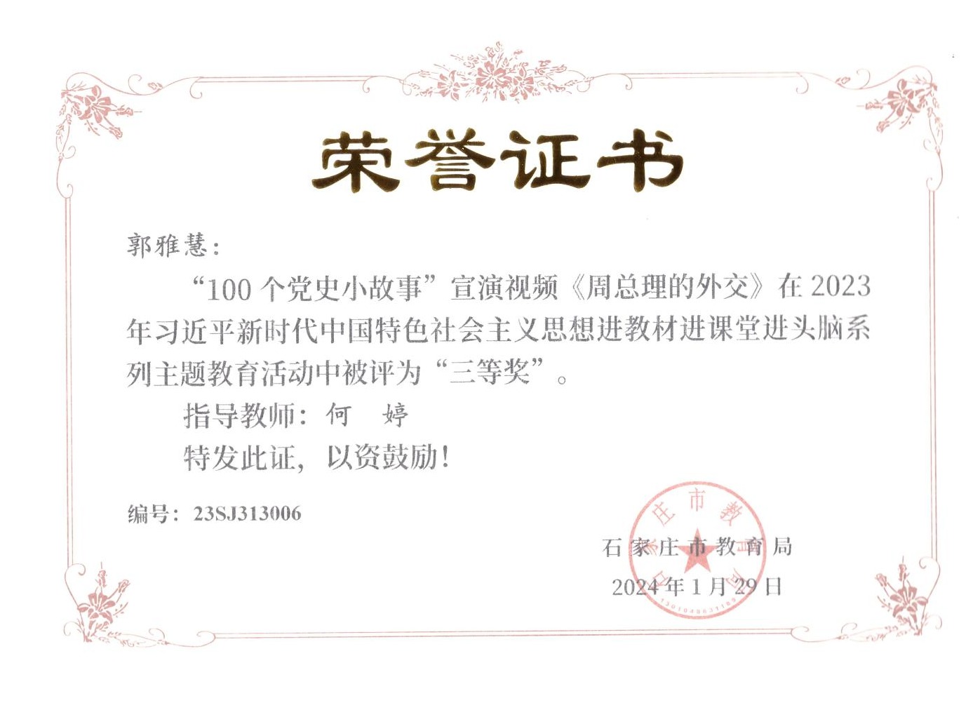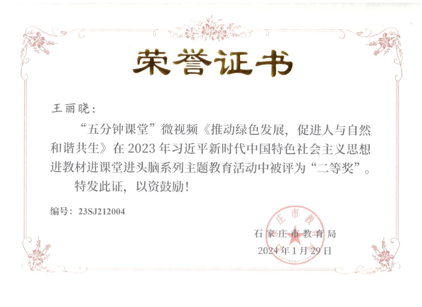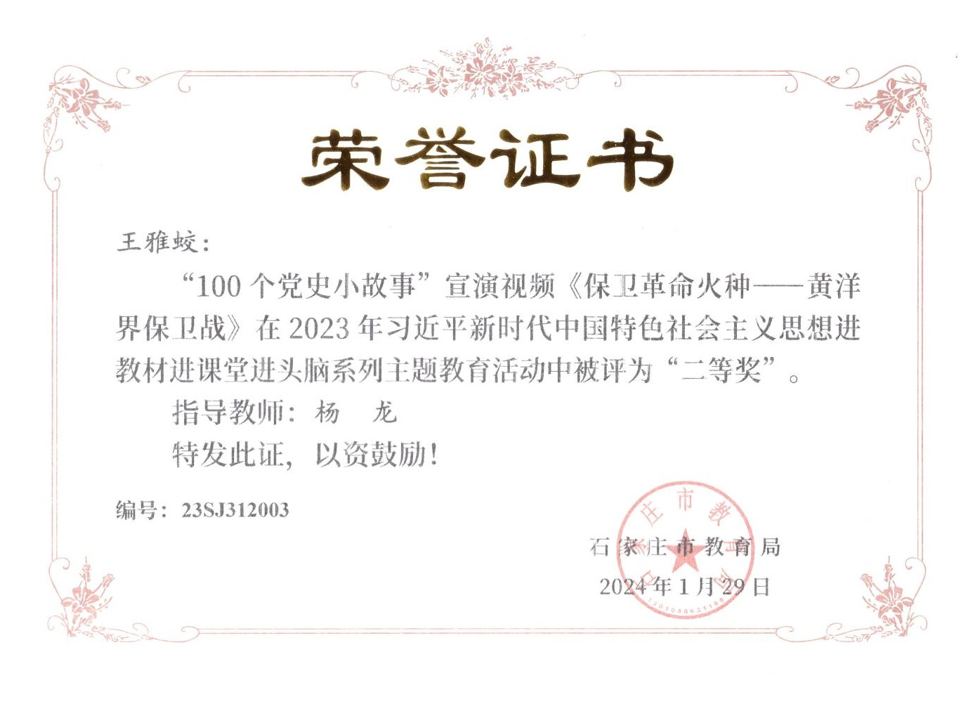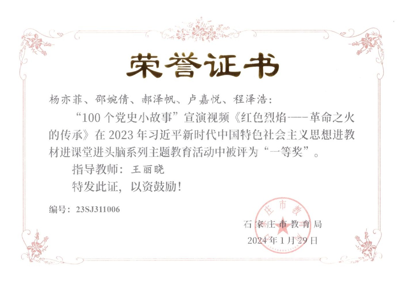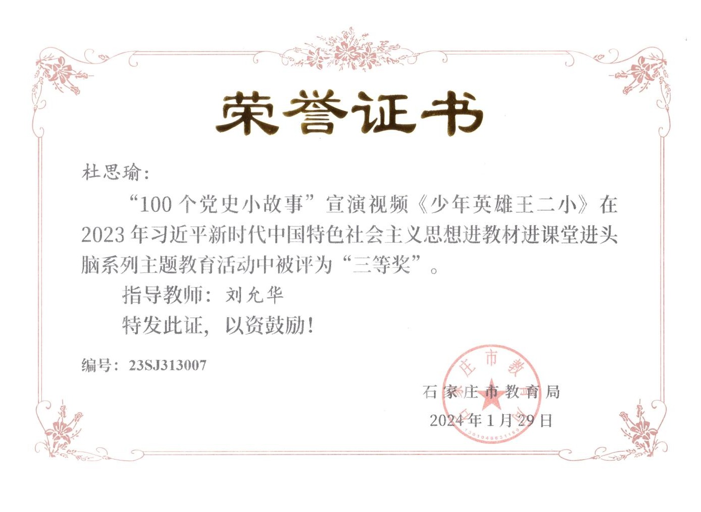近日,由石家庄市教育局主办的“2023年习近平新时代中国特色社会主义思想进教材进课堂进头脑系列主题教育”活动落下帷幕,马克思主义学院教师在活动中荣获“五分钟课堂”微视频比赛一等奖2项、二等奖2项、三等奖2项,指导学生参与的“100个党史小故事”宣讲视频比赛7人荣获一等奖、3人荣获二等奖,4人荣获三等奖。
