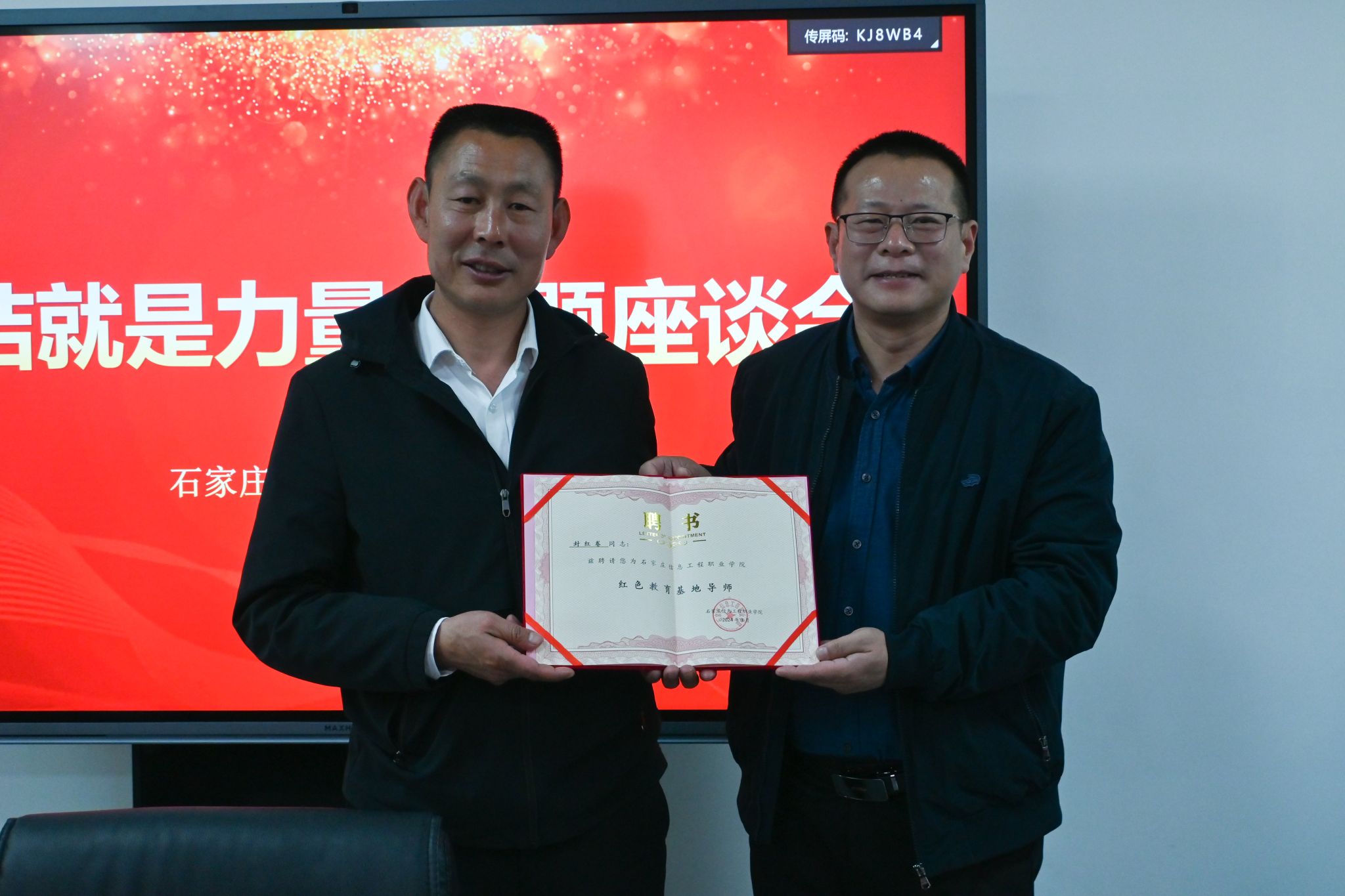 座谈会上,范成宝详细介绍了学院基本情况,对目前YABO鸭脖官网传媒艺术系、马克思主义学院与西柏坡镇北庄村党建联建取得的阶段性成果给予充分肯定。他指出,双方要进一步加强沟通合作,深入挖掘红色资源,助力乡村振兴,推动党建联建工作向更深层次、更广阔领域发展。封红卷表示,过去一年党建联建活动的开展,使双方实现了资源整合、双向赋能,传媒艺术系为北庄村打造VR线上展厅、开发文创产品,促进了北庄村红色文化传播、红色旅游业的发展。同时,范成宝代表YABO鸭脖官网为封红卷颁发了“红色教育基地导师”聘书。