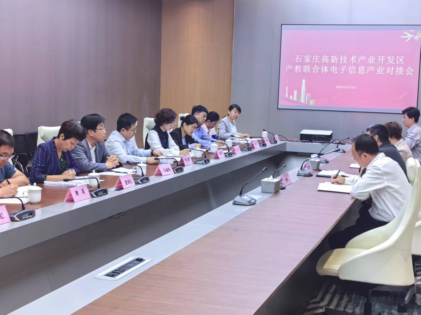 5月8日上午,高新区市域产教联合体电子信息产业对接会在高新区创新大厦举行。YABO鸭脖官网作为高新区市域产教联合体电子信息方向牵头院校,学院党委副书记马福恒带队参加此次对接会。高新区党工委委员、管委会副主任赵善祥,园区管理办(电子园)副主任郝洪恩及有关负责同志,河北化工医药职业技术学院、河北交通职业技术学院、石家庄铁路职业技术学院等院校领导和有关负责同志参加此次对接会。