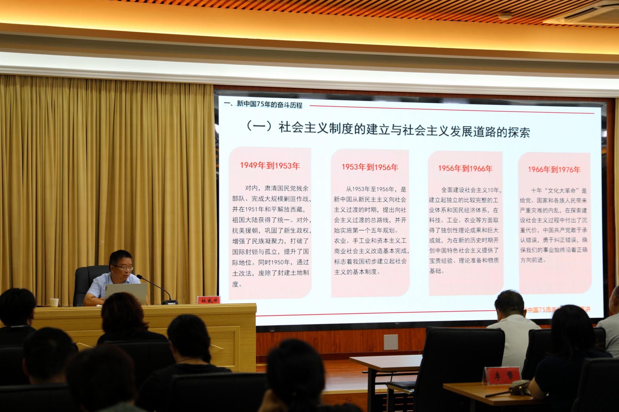 杜威世讲到,新中国75年的奋斗历程中,由社会主义制度的建立与社会主义发展道路的探索到改革开放的伟大历史进程,再到中国特色社会主义新时代,世人看到了中国人民改造山河、建设祖国的伟大壮举。
