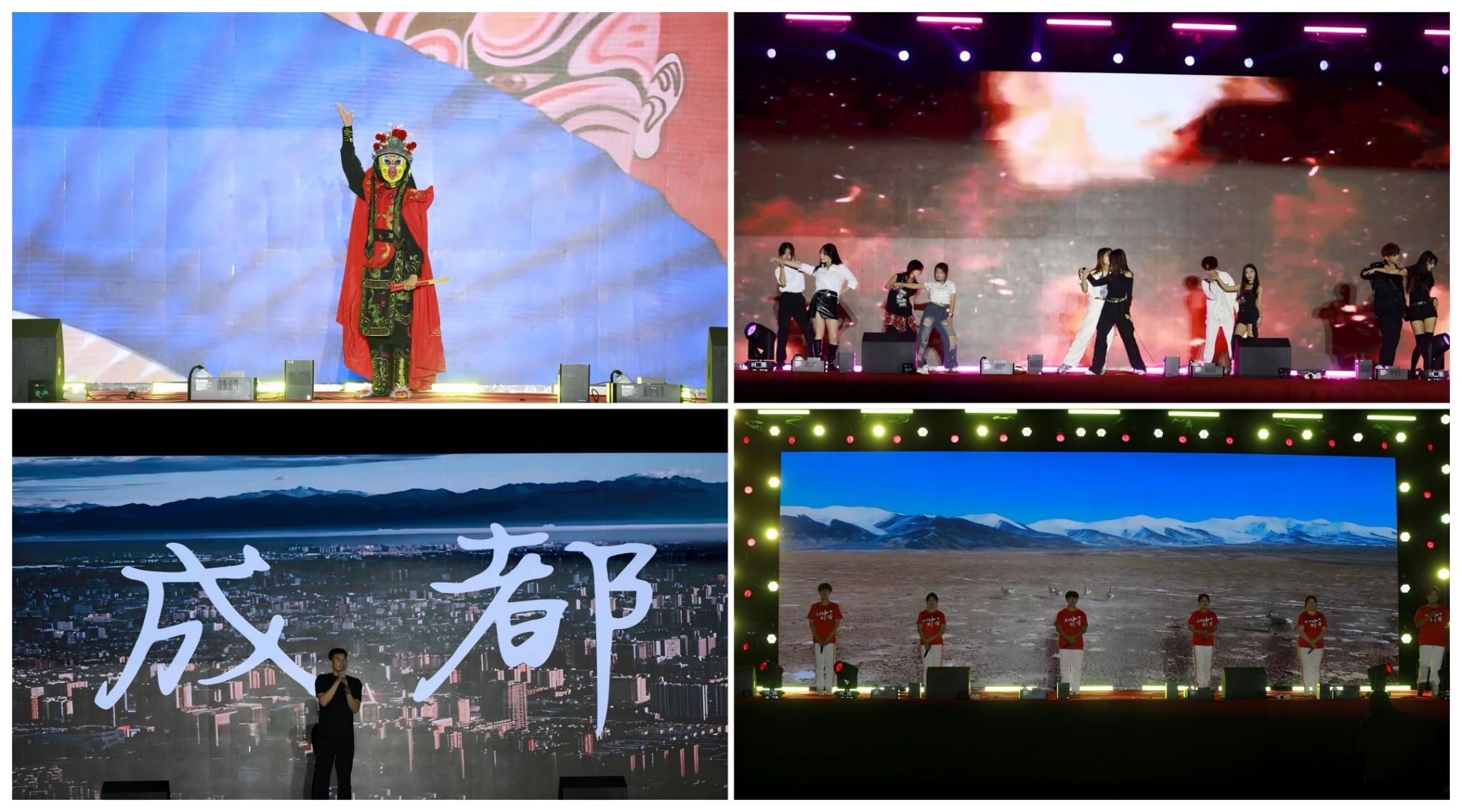 一系列精心准备的节目轮番上演,每一个环节都充满了创意与惊喜。农林牧医系带来的开场舞《如愿》以优美动人的旋律搭配轻盈曼妙的舞姿,瞬间点燃了现场气氛。经济贸易系选送的歌曲《光亮》,以激昂的歌声让人心潮澎湃。会计系同学通过活力四射的现代舞蹈《dancing shoot》展现了他们年轻而不失专业的风采。管理系的古典舞《花雨落》以其优雅的动作、柔美的姿态赢得了满堂喝彩。此外,《灯火里的中国》《new boy》《天路》等一系列充满正能量的作品依次呈现,充分展示了学生们积极向上的人生态度及深厚的艺术功底。由农林牧医系特别策划的传统技艺展示——《变脸》更是将整场晚会推向高潮,那变幻莫测的脸谱变换技巧令人叹为观止,引来观众阵阵惊呼和掌声。经济贸易系带来的说唱作品《trouble marker》以其独特的风格吸引了大家的目光。管理系用一首深情款款的《成都》带领所有人走进了一段关于成长的故事。会计系以一首气势磅礴的朗诵——《盛世中国》为同学鼓足了干劲,用《从传统到现在》的T台走秀让同学们在民国和现代的时空中穿越。最后,市歌舞团的吴婷老师亲情助演,用三首高水准的歌曲演唱为本次晚会画上了圆满句号。
