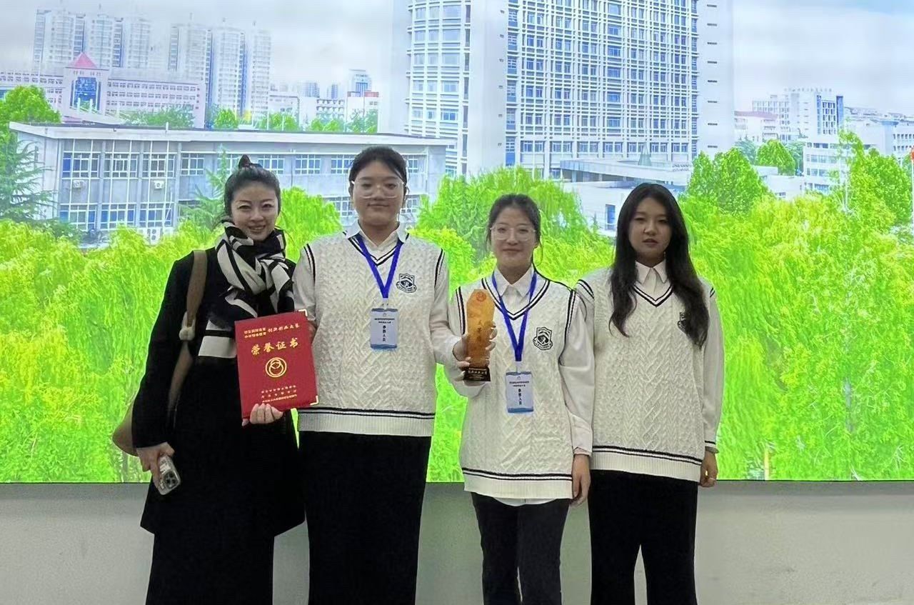 ▲指导教师吴雅娟(左一),学生王泽宇(左二)、宋嘉慧(右二)、李俊贤(右一)