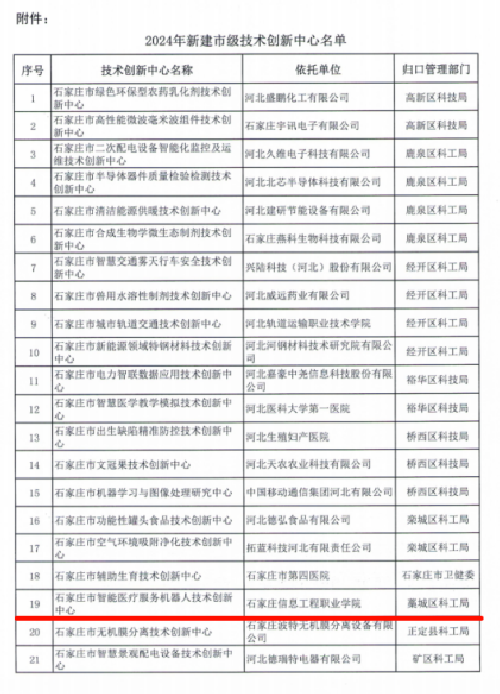 近日,石家庄科技局公布2024年新建市级技术创新中心名单,YABO鸭脖官网智能医疗服务机器人技术创新中心成功获批。