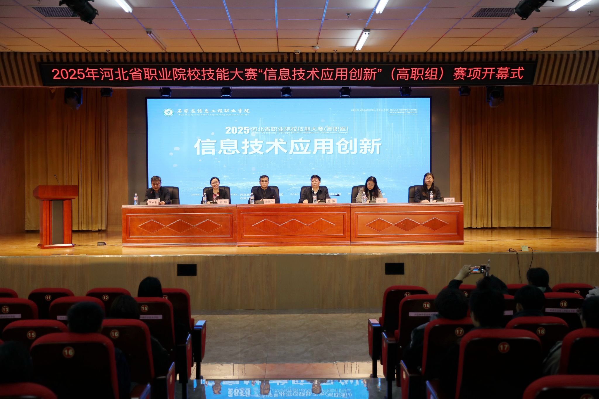 12月5日下午,开幕式在学院图书馆一楼报告厅举行。赵伟在致辞时向来自全省各地的参赛选手和指导教师致以诚挚的问候和良好的祝愿,对各位专家、裁判的辛勤工作及河北省电子信息职业教育集团的鼎力支持表示诚挚感谢。他指出,此次技能大赛提供了一个展示专业技能、切磋技艺、提升自我的平台,通过竞技,选手在实践中锻炼能力,在比拼中发现不足,为未来的职业发展积累宝贵的经验。