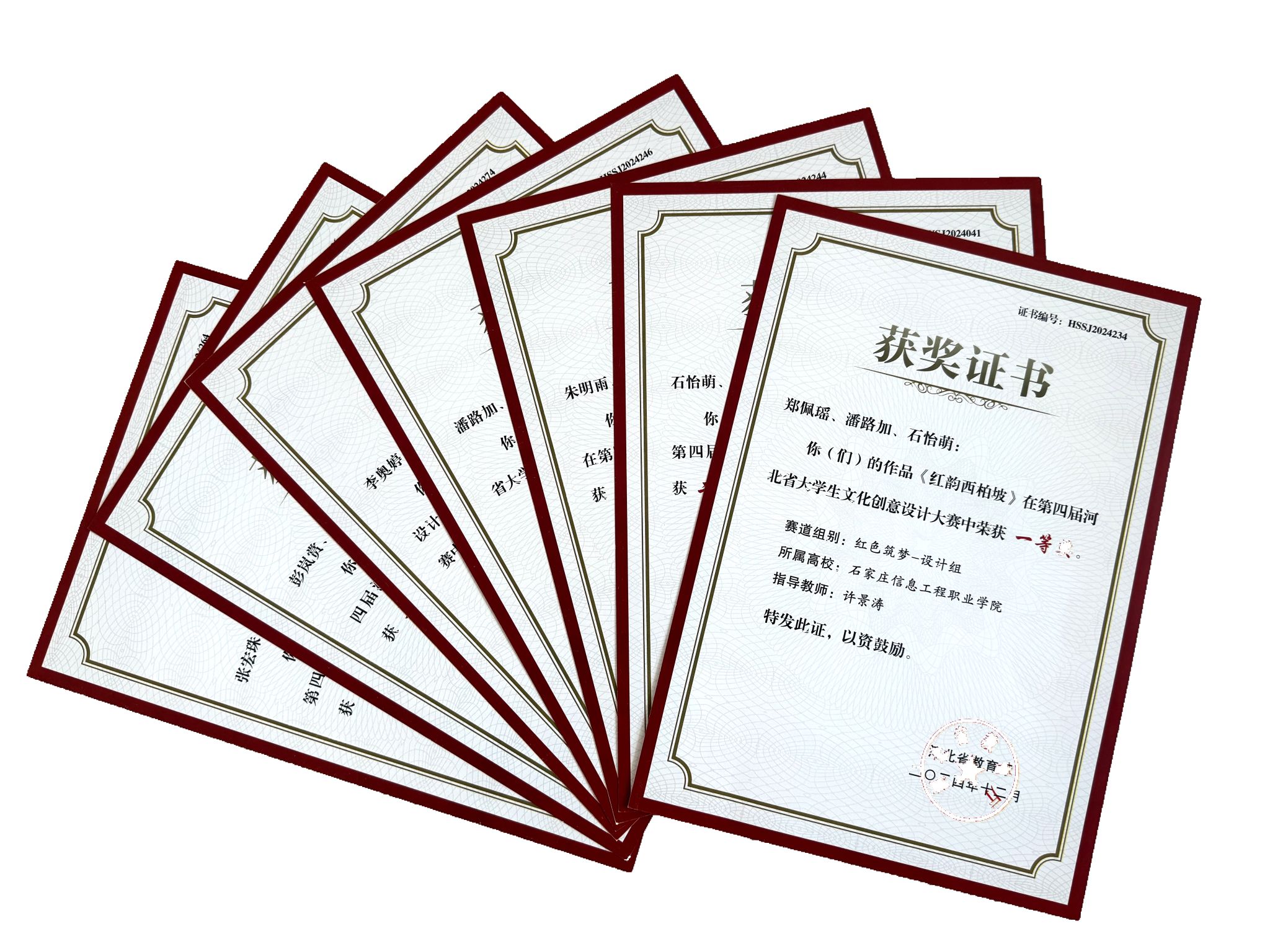 本次大赛由河北省教育厅主办,河北民族师范学院承办,分为创意魅力和红色筑梦两个赛道,每个赛道下设产品组和设计组。自大赛启动以来,省内众多高校积极响应,踊跃参与,共收到全省86所参赛高校报名项目7634个。在红色筑梦赛道,YABO鸭脖官网传媒艺术系师生许景涛、郑佩瑶、潘路加、石怡萌以《红韵西柏坡》项目荣获设计组一等奖;孟松松、朱明雨、石怡萌、张佳琳的《红色印冀—赶考之路》,潘路加、郑佩瑶、朱明雨的《柏坡传薪》荣获设计组二等奖;张宏珠、王佳雨、杨冰硕的《薪火相传·西柏坡》,耿占佳、李奥婷、张雅轩、李慧静的《西柏坡赶考精神IP形象设计》荣获设计组三等奖。在创意魅力赛道,孟松松、石怡萌、张欢、郑佩瑶的《自游正定文创设计》荣获设计组二等奖,彭岚赏、商睿恩、董彦钊的《赵州桥小商品》荣获设计组三等奖。