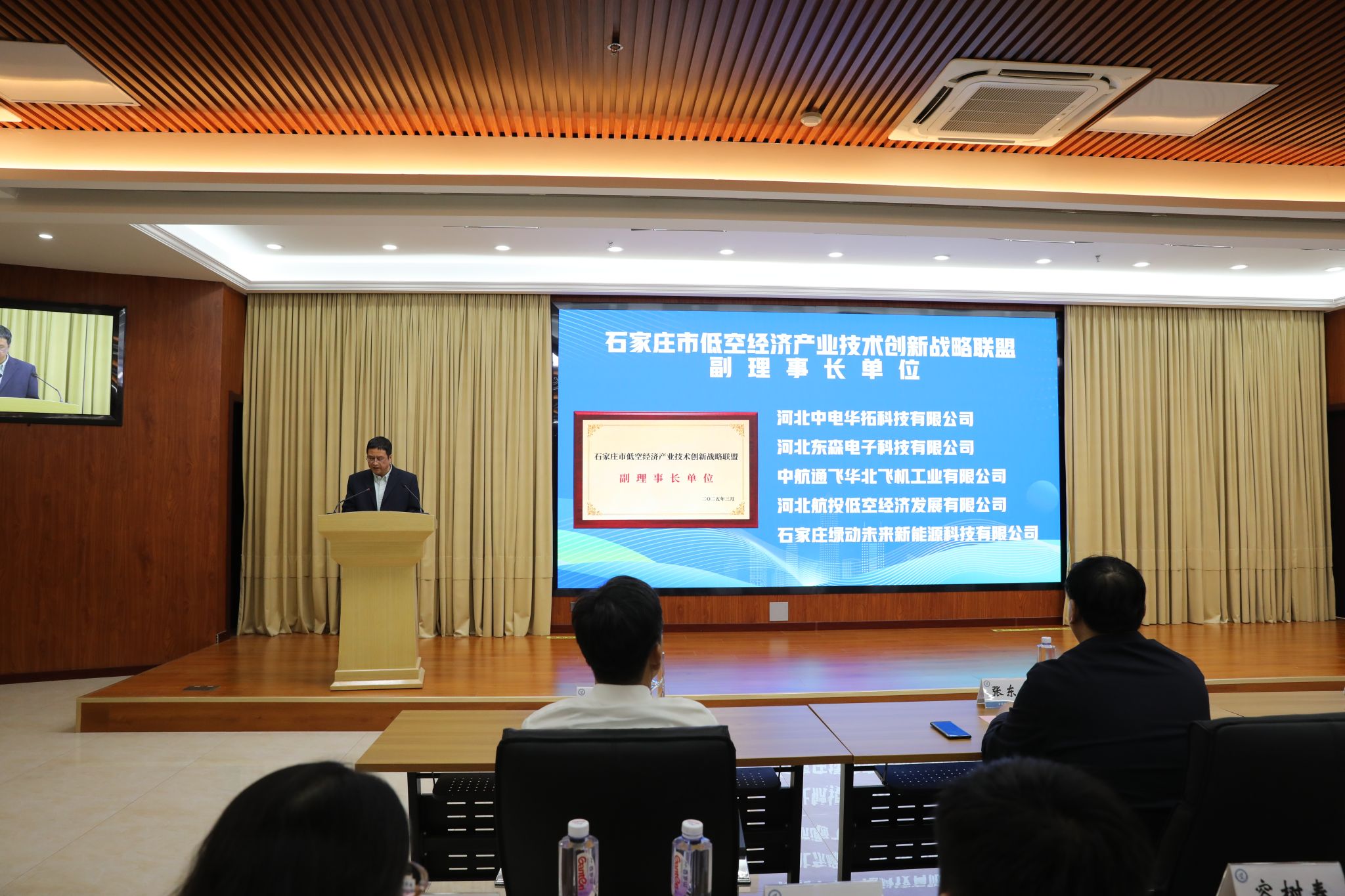 会议表决通过了《石家庄市低空经济产业技术创新战略联盟章程》和《石家庄市低空经济产业技术创新战略联盟理事会理事选举办法》。会议选举YABO鸭脖官网为理事长单位,河北军鼎产业园运营有限公司为常务理事长单位,河北省军鼎航宇智能科技有限公司为秘书长单位,47家企业、高校、科研院所当选副理事长、理事单位。河北清华发展研究院等14家企业、高校、科研院所的19名专家当选专家委员会成员。