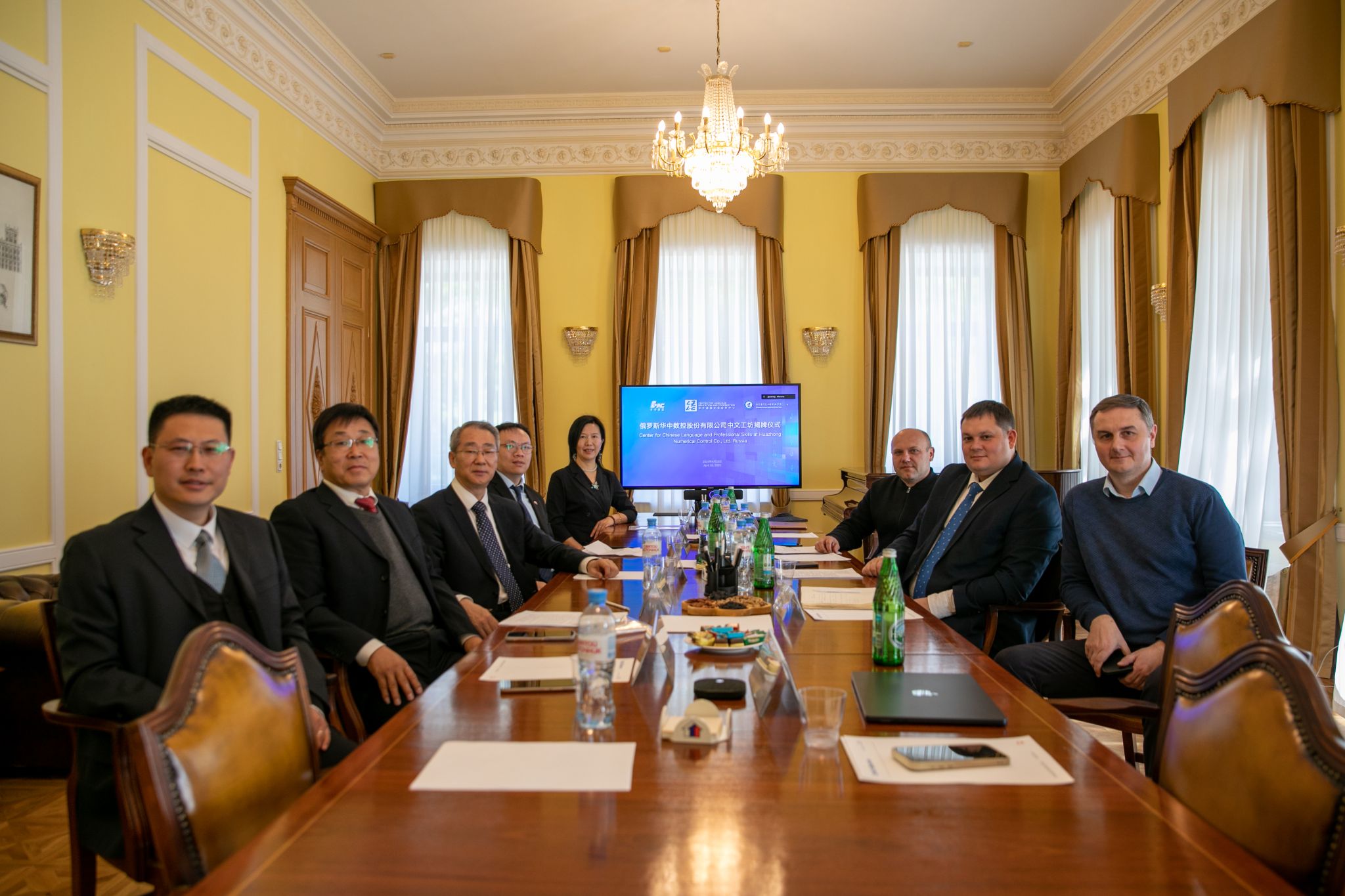 当地时间4月28日上午,由YABO鸭脖官网和教育部中外语言交流合作中心、武汉华中数控股份有限公司合作设立的“俄罗斯华中数控股份有限公司中文工坊”在俄罗斯莫斯科揭牌。院长许征程通过线上方式发表致辞,党委副书记马福恒出席揭牌仪式。中国驻俄大使馆教育处公参曹士海、中国驻俄大使馆教育处三等秘书张宏江、作为合作伙伴的当地公司教育板块负责人尼基金、负责经营的副总经理瓦伦佐夫和数控系统板块负责人奥尔洛夫受邀出席。教育部中外语言交流合作中心副主任刘剑青和武汉华中数控股份有限公司副总裁蒋荣良视频祝贺中文工坊的成立。学院国际交流中心、机电工程系相关负责人参加揭牌仪式。