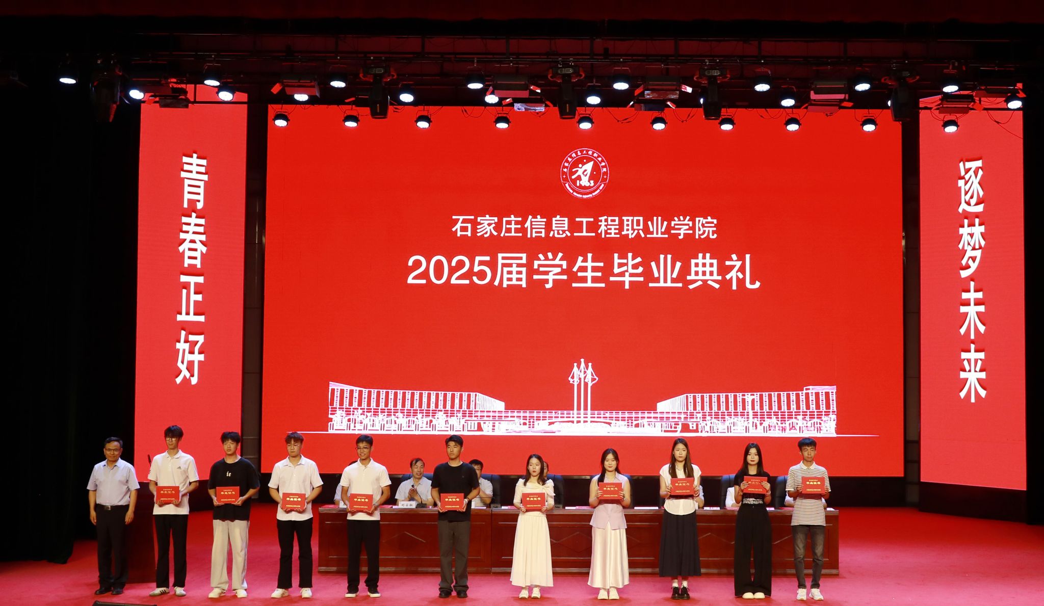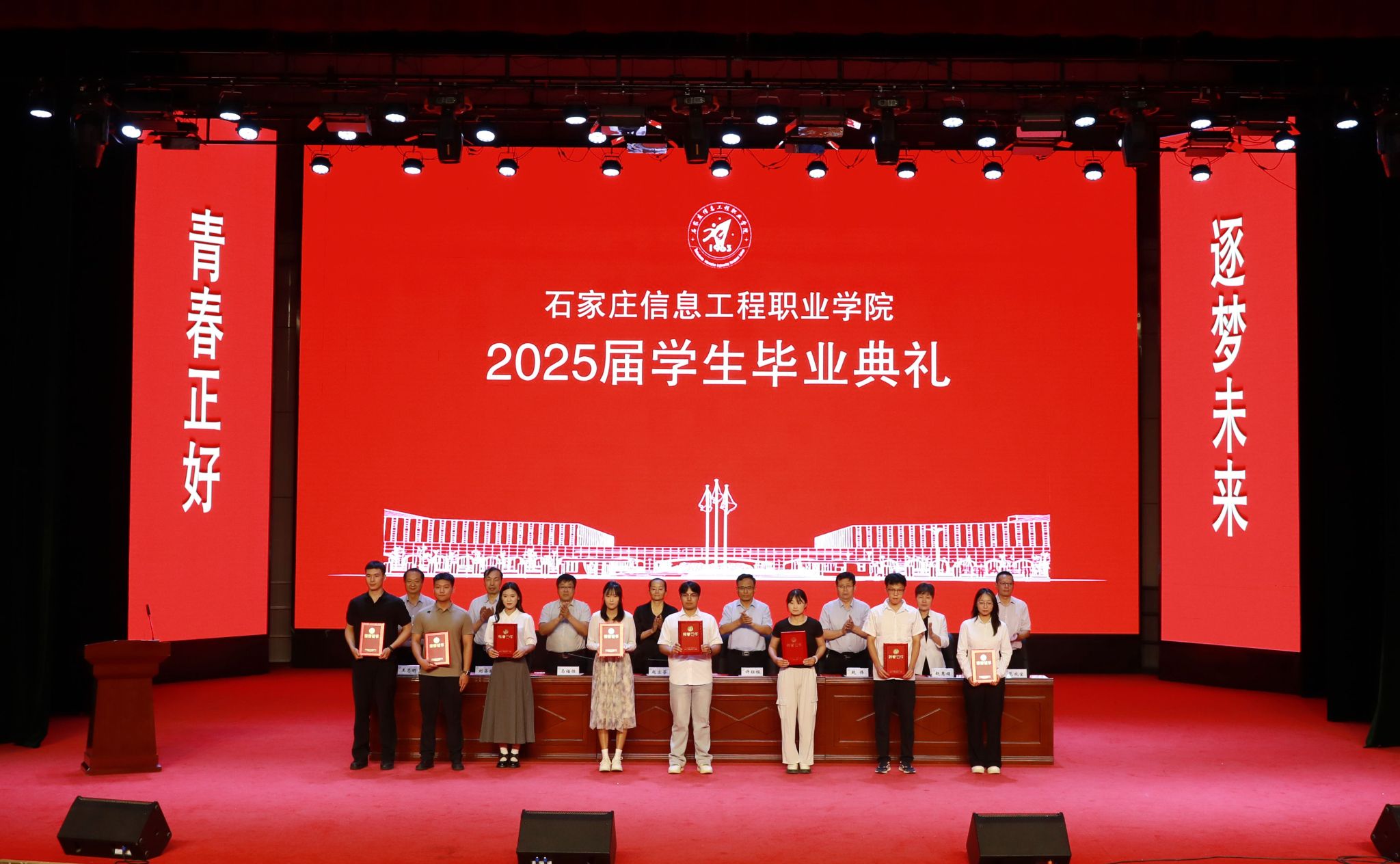 赵立芬寄语广大毕业生,要以产业需求为尺,校准“大国工匠”的成长坐标。作为新时代高职毕业生,你们的成长之路,当始终以国家产业需求为航向——主动对接产业战略前沿,在产业转型升级的广阔云端锤炼过硬本领。要将“重技善学、恒信自强”的校训精神,内化为“精雕细琢每一个零件、精准编写每一行代码”的职业匠心,锻造成为“深谙产业规律、善解实践难题”的复合型工匠。要以技术创新为帆,勇闯“中国智造”的蔚蓝海域。置身于传统产业蝶变与新兴技术奔涌的交汇点,依托学院深厚的产教融合沃土,将课堂所学转化为企业技术攻坚的“金钥匙”,让实训室迸发的创新火花,点燃生产线的变革引擎。请时刻铭记职业教育的深远价值,不仅在于掌握现有技术,更在于以“匠心”铸魂、以“创新”开路,为“中国智造”开辟崭新的赛道。要以服务社会为墨,书写“人民至上”的青春答卷。新时代青年的价值实现,其圆心永远是“人民的需要”。走进乡村,用电商直播为农产品插上“数字翅膀”,在乡村振兴的热土上厚植家国情怀;扎根基层,以智慧养老平台守护“夕阳红”,在社区治理的细微处彰显责任担当;面对急难险重的考验,传承“逆行者”精神,用专业技能构筑起坚实的民生保障防线。当你们将代码嵌入乡村的致富通途,把技术融入城市的烟火人间,匠心便拥有了最厚重的人文底色,这正是新时代青年“以技报国”最动人的姿态。