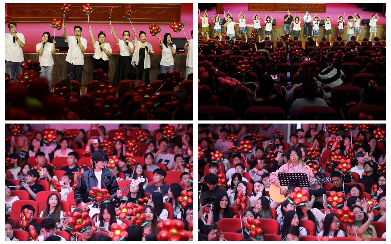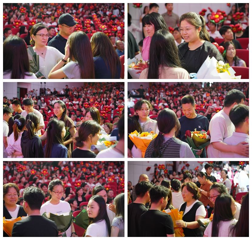 毕业生代表向49名2025届毕业班辅导员献花。此时,现场响起了《送你一朵小红花》《启程》的美好旋律,表达了对毕业生深深的祝福和不舍的情谊,愿每个人都能勇敢奔赴向往的未来。