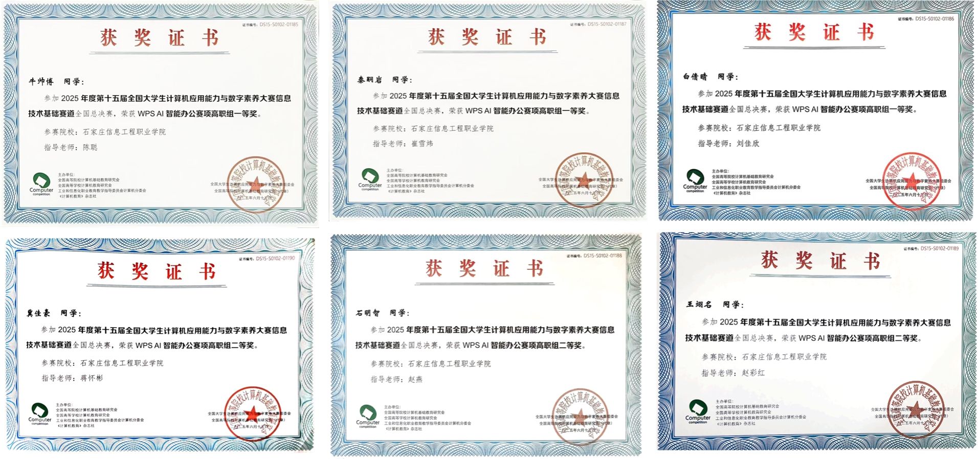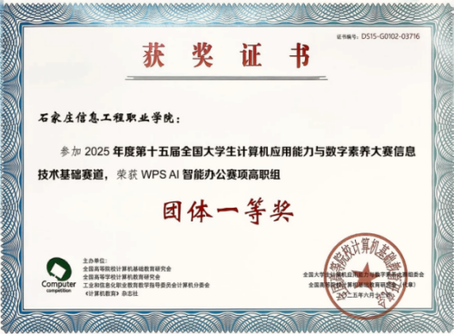 全国大学生计算机应用能力与数字素养大赛是伴随着我国计算机教育的普及和信息技术的发展面向全国高等院校所有专业大学生的一项赛事,并在2023年被列入中国高等教育学会高校竞赛排行榜观察名录。本次大赛共有来自全国200多所高校参赛,参赛人数超过38000人。计算机应用系学生牛帅博、白倩晴、秦嗣岩获得WPSAI智能办公赛项高职组一等奖,石明智、王翊名、冀佳豪获得同赛道二等奖的好成绩。