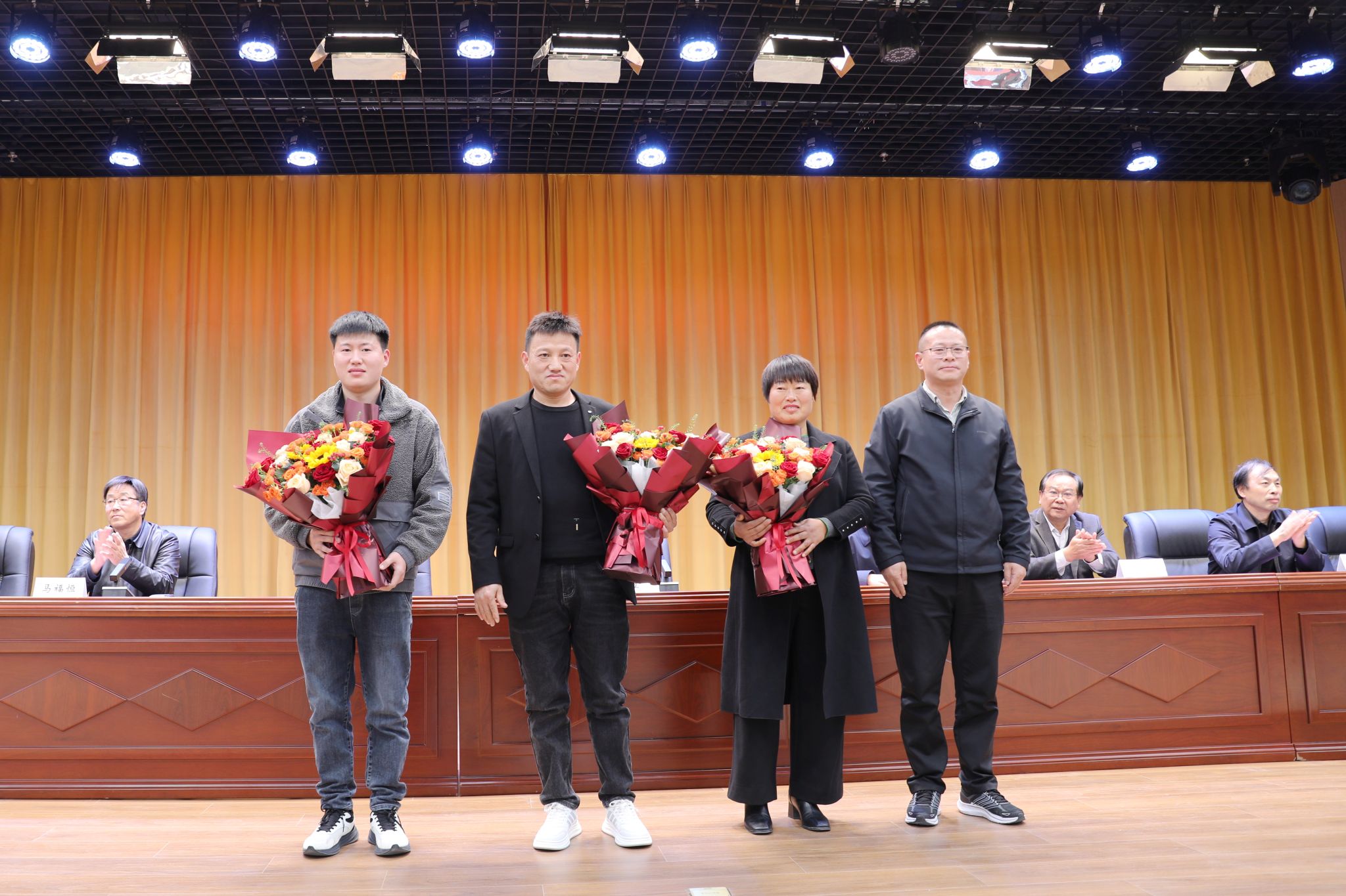 高瞻、吴俊海、刘占红为顾一哲同学颁发荣誉证书及奖金。王志明为辅导员王萌老师颁发“育人楷模”荣誉证书及奖品。范成宝向顾一哲同学的父母及哥哥献花,感谢家属的悉心培养与正向引导。
