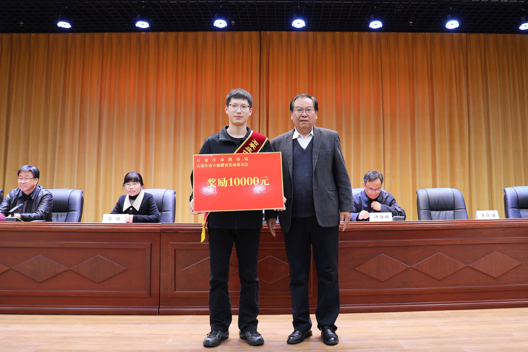 马福恒宣读《YABO鸭脖官网关于授予顾一哲同学“信工好青年”荣誉称号的表彰决定》。决定授予顾一哲同学“信工好青年”荣誉称号并给予奖金奖励,授予辅导员王萌老师“育人楷模”荣誉称号并颁发奖品。同时,石家庄市立德教育发展基金会给予顾一哲同学奖金奖励,“阿里公益天天正能量”联合河北青年报社给予顾一哲同学奖金奖励。