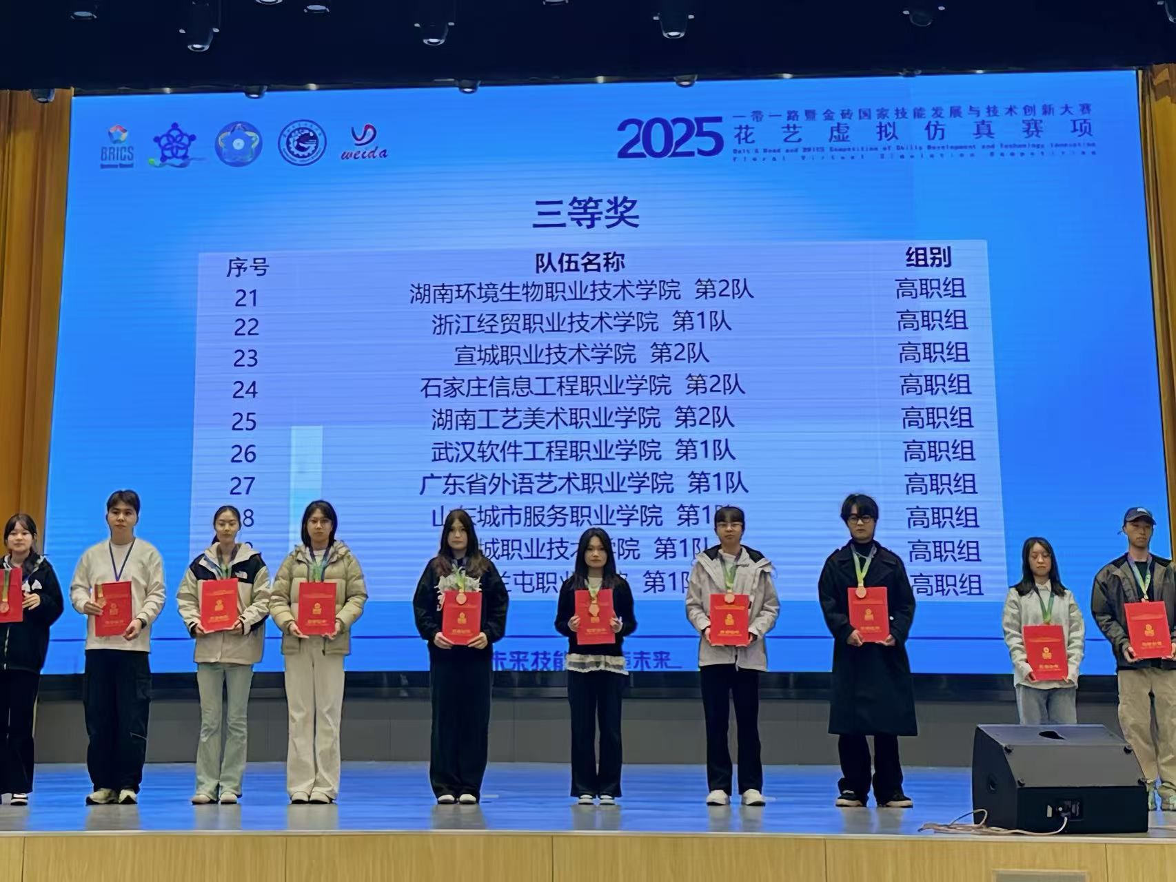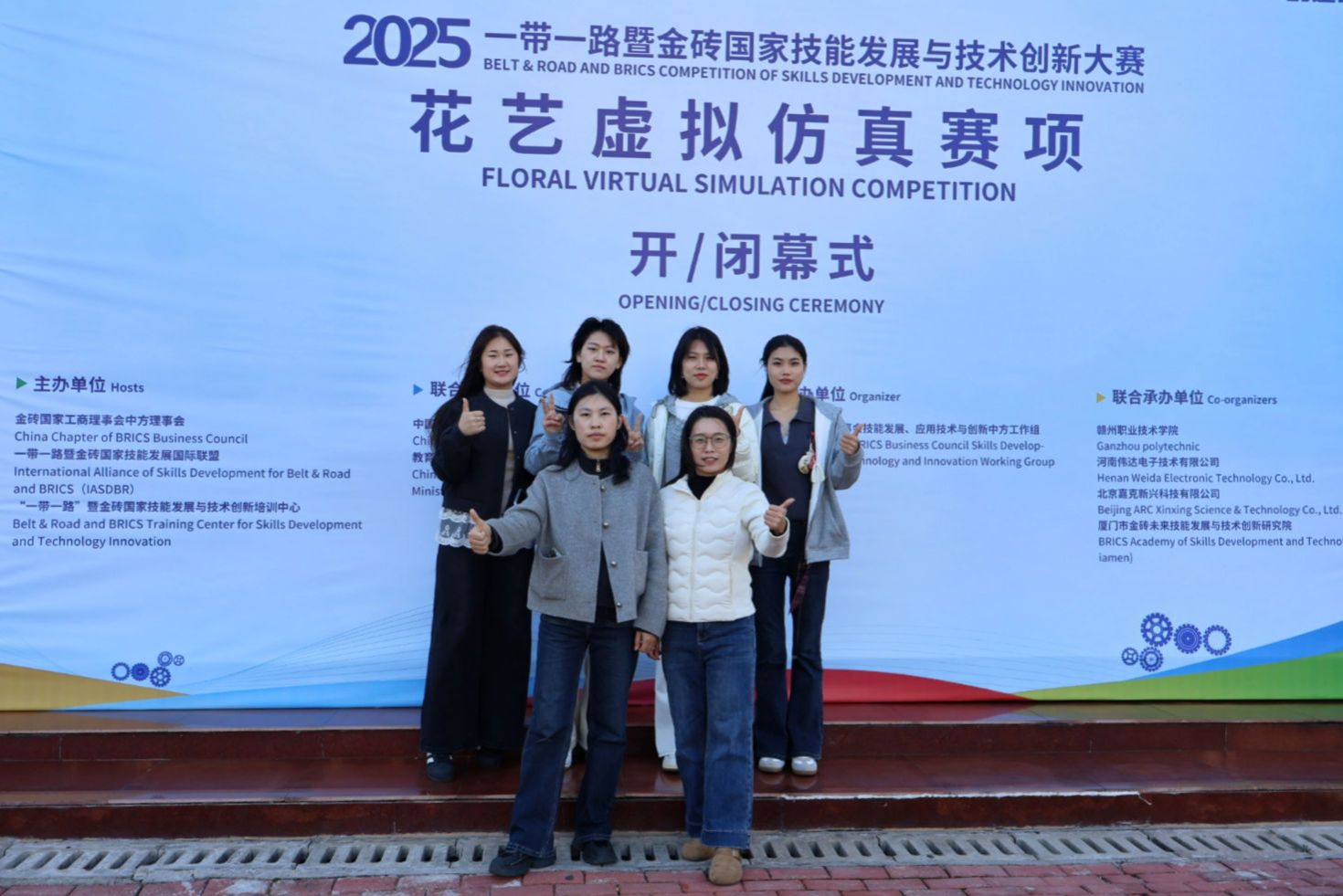 11月23日,2025一带一路暨金砖国家技能发展与技术创新大赛花艺虚拟仿真赛项(高职组)在赣州职业技术学院顺利举行。YABO鸭脖官网农林牧医系园林技术专业学生鲁婧媛、汤鑫蕊、王梓茜、赵宇萌(指导教师董彦娜、姚君君)组成的两支参赛团队发挥出色,分别荣获全国二等奖、三等奖奖,YABO鸭脖官网荣获优秀组织奖。