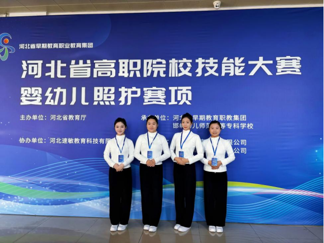 近日,2026年河北省高职院校技能大赛婴幼儿照护赛项在邯郸幼儿师范高等专科学校圆满落幕。由生物医药技术系婴幼儿托育服务与管理专业何若雪、高子甜、沈敏、李颖四位同学组成的参赛团队,在王乐和蔡亚欣老师的指导下,凭借扎实的专业功底、娴熟的实操技能与默契的团队协作,从全省众多参赛队伍中脱颖而出,荣获二等奖。