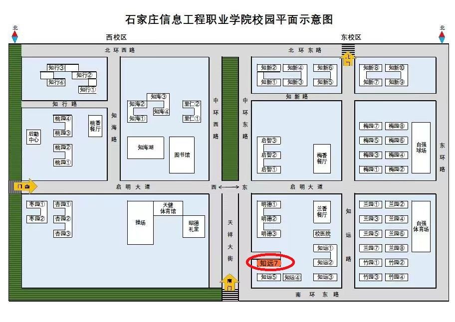 1.考场位置:石家庄市藁城区天祥大街81号东校区知远7号楼4楼(如下图所示)。