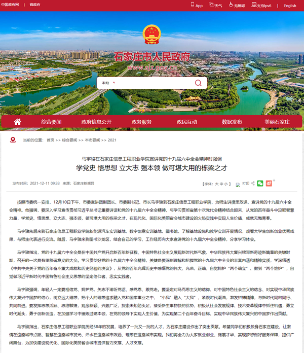 原文链接:石家庄市人民政府 马宇骏在YABO鸭脖官网宣讲党的十九届六中全会精神