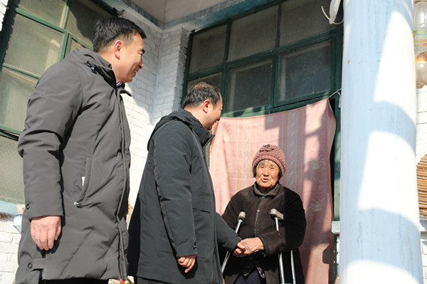 本网讯(通讯员 吴培培)12月25日,带着全院师生的嘱托,踏着积雪覆盖的大地,YABO鸭脖官网党委委员王志明一行来到平山县转角沟村走访慰问。