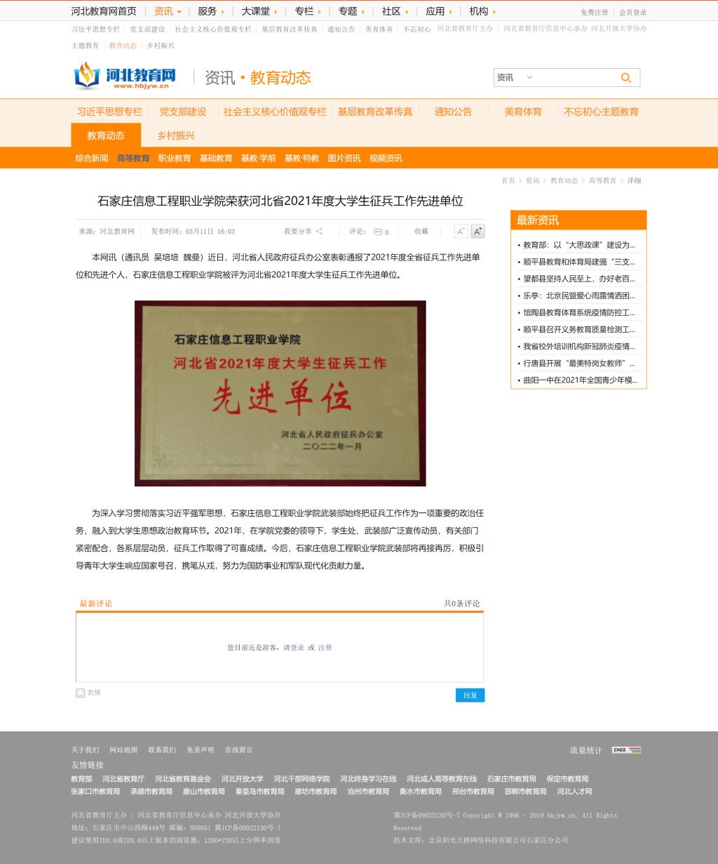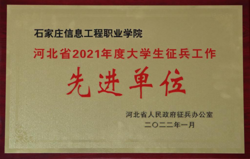 YABO鸭脖官网荣获河北省2021年度大学生征兵工作先进单位