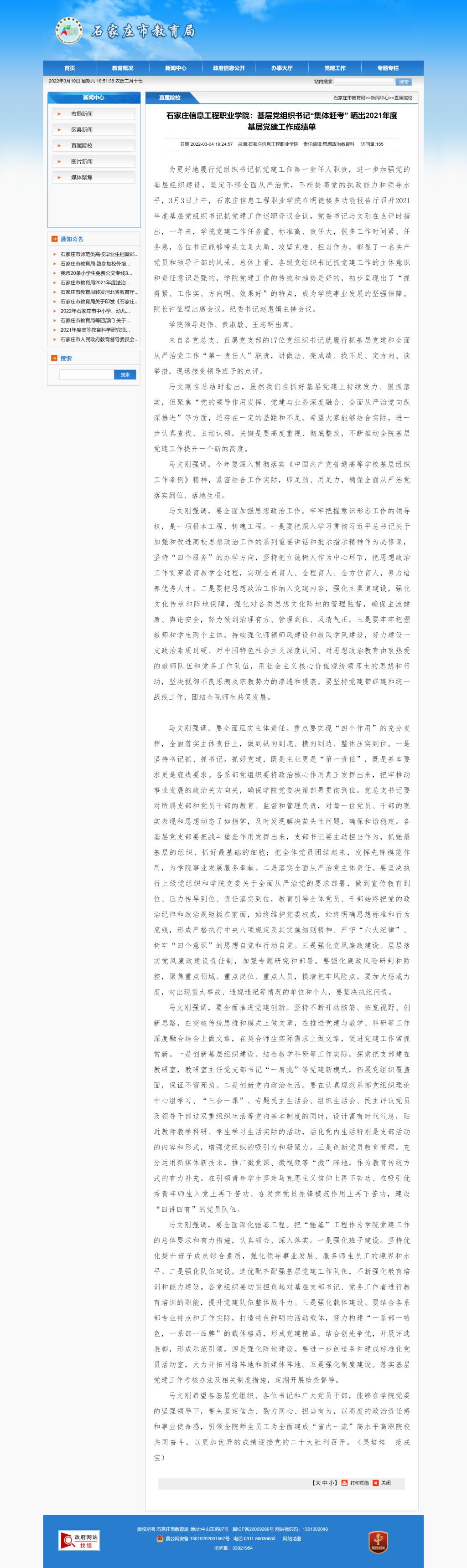 马文刚希望各基层党组织、各位书记和广大党员干部,能够在学院党委的坚强领导下,带头坚定信念、勠力同心、担当有为,以高度的政治责任感和事业使命感,引领全院师生员工为全面建成“省内一流”高水平高职院校共同奋斗,以更加优异的成绩迎接党的二十大胜利召开。(吴培培)