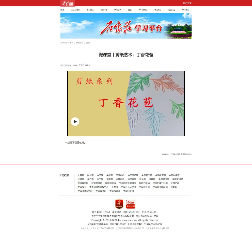 下一条:【学习强国】微课堂丨剪纸艺术:白蜡树叶