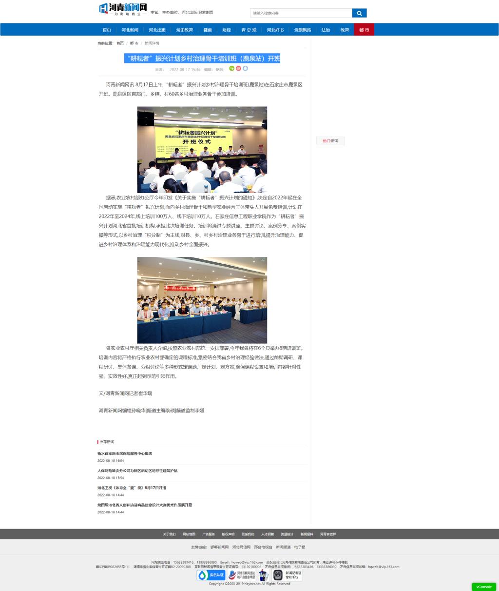 河青新闻网讯 8月17日上午,“耕耘者”振兴计划乡村治理骨干培训班(鹿泉站)在石家庄市鹿泉区开班。鹿泉区区直部门、乡镇、村60名乡村治理业务骨干参加培训。