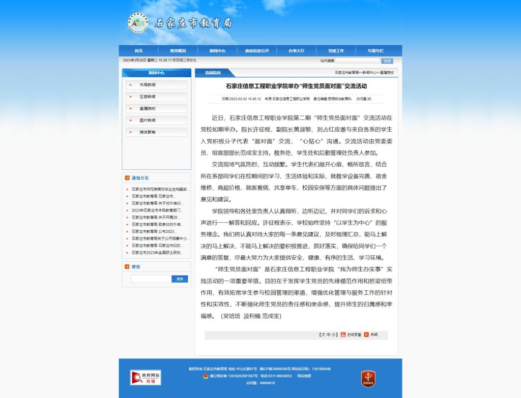 “师生党员面对面”是YABO鸭脖官网“我为师生办实事”实践活动的一项重要举措。目的在于发挥学生党员的先锋模范作用和桥梁纽带作用,有效拓宽学生参与校园管理的渠道,增强优化管理与服务工作的针对性和实效性,不断强化师生党员的责任感和使命感,提升师生的归属感和幸福感。