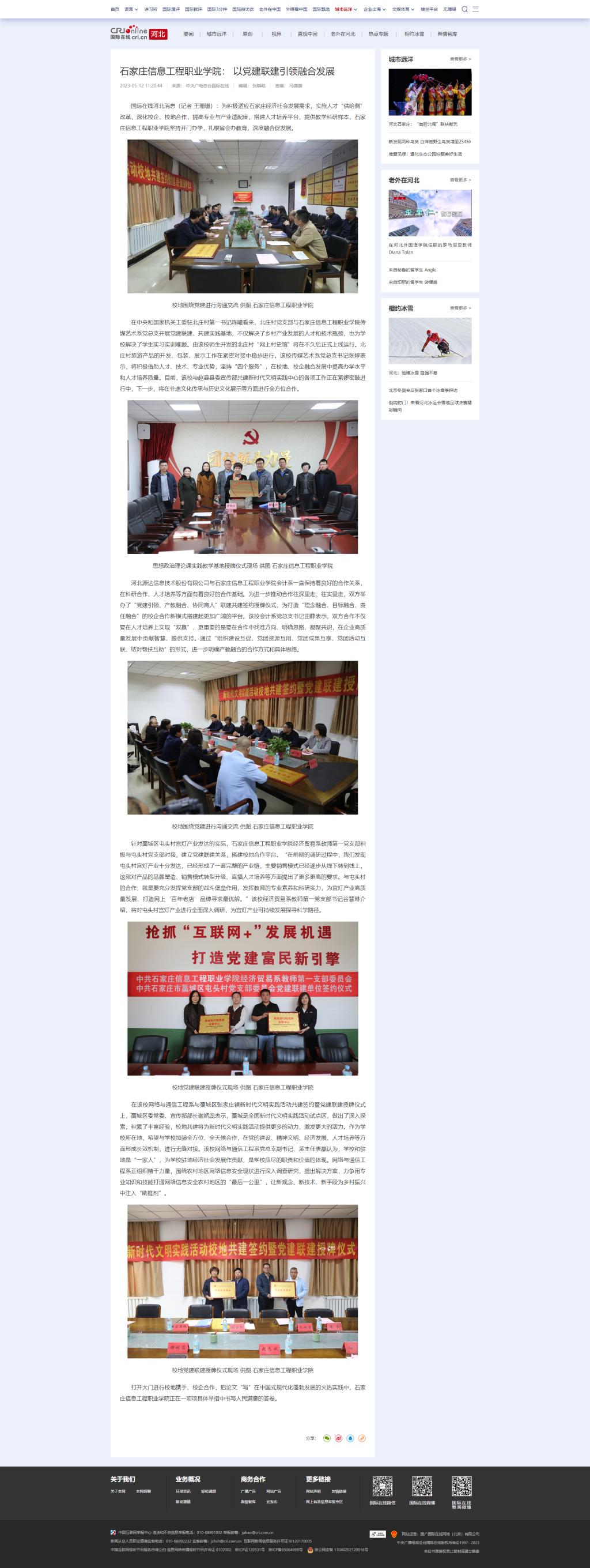 在中央和国家机关工委驻北庄村第一书记陈曦看来,北庄村党支部与YABO鸭脖官网传媒艺术系党总支开展党建联建、共建实践基地,不仅解决了乡村产业发展的人才和技术瓶颈,也为学校解决了学生实习实训难题。由该校师生开发的北庄村“网上村史馆”将在不久后正式上线运行。北庄村旅游产品的开发、包装、展示工作在紧密对接中稳步进行。该校传媒艺术系党总支书记张婷表示,将积极借助人才、技术、专业优势,坚持“四个服务”,在校地、校企融合发展中提高办学水平和人才培养质量。目前,该校与赵县县委宣传部共建新时代文明实践中心的各项工作正在紧锣密鼓进行中,下一步,将在非遗文化传承与历史文化展示等方面进行全方位合作。