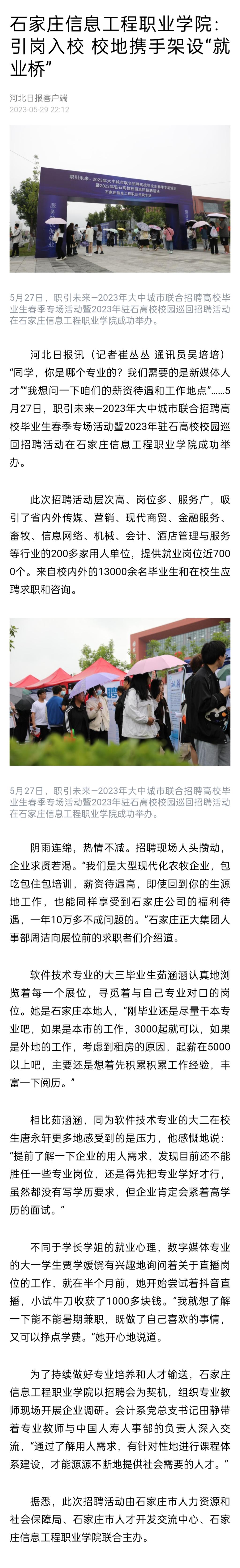 5月27日,职引未来—2023年大中城市联合招聘高校毕业生春季专场活动暨2023年驻石高校校园巡回招聘活动在YABO鸭脖官网成功举办。