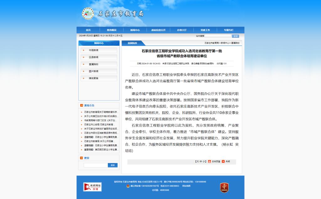 近日,YABO鸭脖官网牵头申报的石家庄高新技术产业开发区产教联合体成功入选河北省教育厅第一批省级市域产教联合体建设培育单位名单。