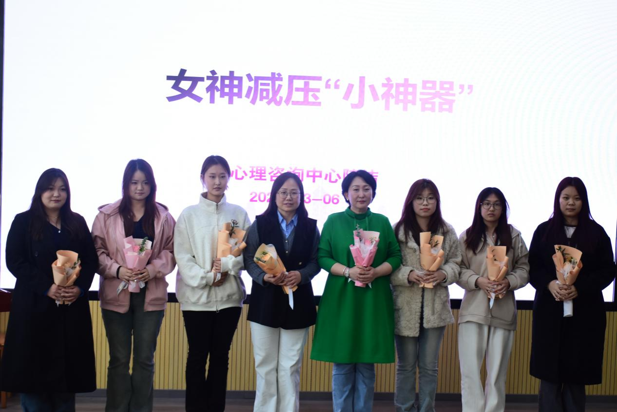 活动邀请学院基础部大学生心理健康指导中心陈洁老师作题为“女神减压‘小神器’”的精彩讲座。陈老师凭借深厚的专业知识和丰富的实践经验,深入讲解了女性心理压力的来源和内在原因。针对常见的心理压力,陈老师分享了视觉减压、触觉解压、嗅觉味觉听觉解压、宣泄减压、积极自我暗示等一系列科学有效的减压解压方法。现场气氛热烈,师生纷纷表示受益匪浅。