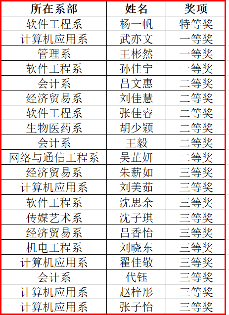 比赛最终评选出特等奖1名,一等奖3名,二等奖6名,三等奖10名。