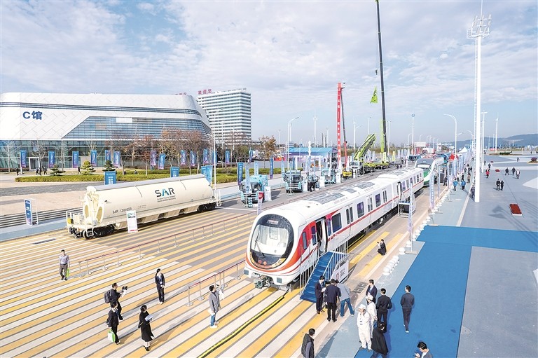 2023中国国际轨道交通和装备制造产业博览会近日举办,一批新型产品亮相。图为博览会户外展示区。 新华社记者 陈思汗 摄