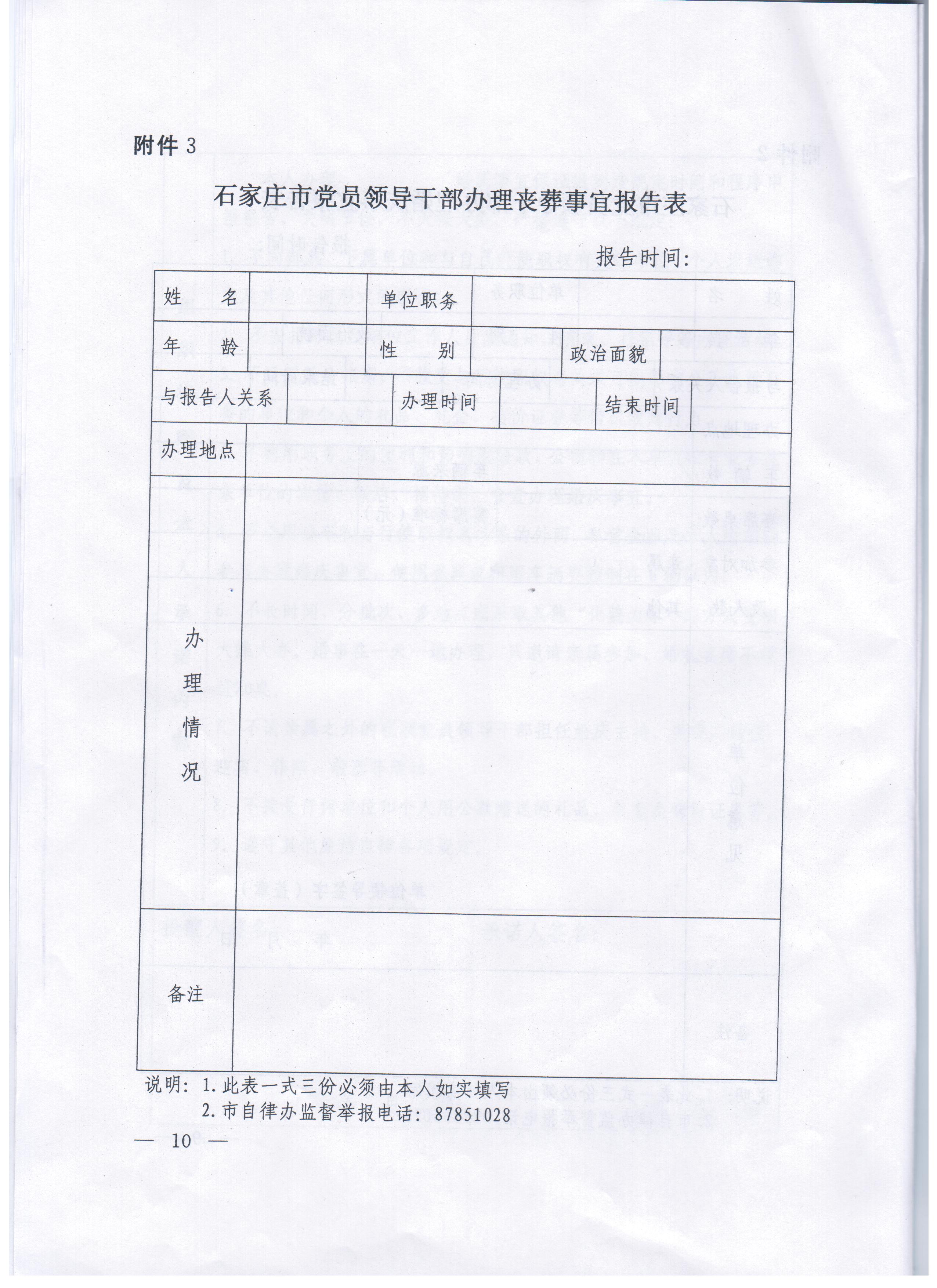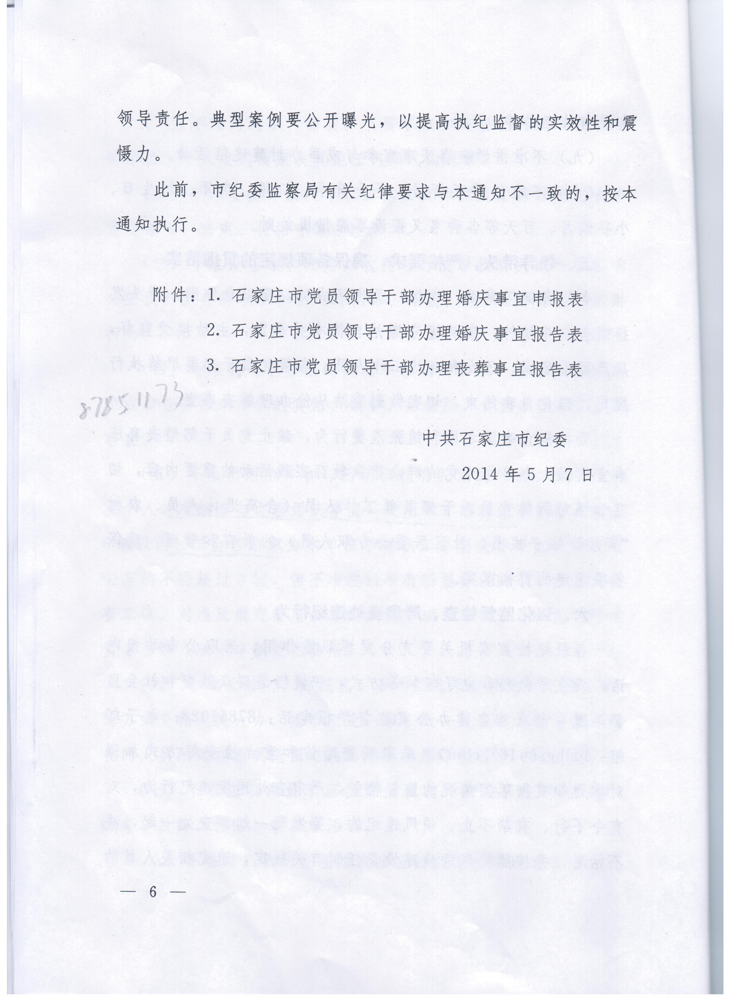现将中共石家庄市纪委《关于进一步规范党员干部婚丧喜庆有关事宜的通知》转发给你们,迅速组织本部门所有人员认真学习,贯彻落实,严格遵守。