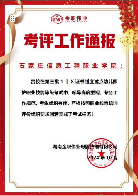 近日,我系组织完成了教育部“1+X”幼儿照护职业技能等级证书(中级)考试。来自2022级婴幼儿托育服务与管理专业的40名学生参加了考试,并取得通过率100%的优异成绩!