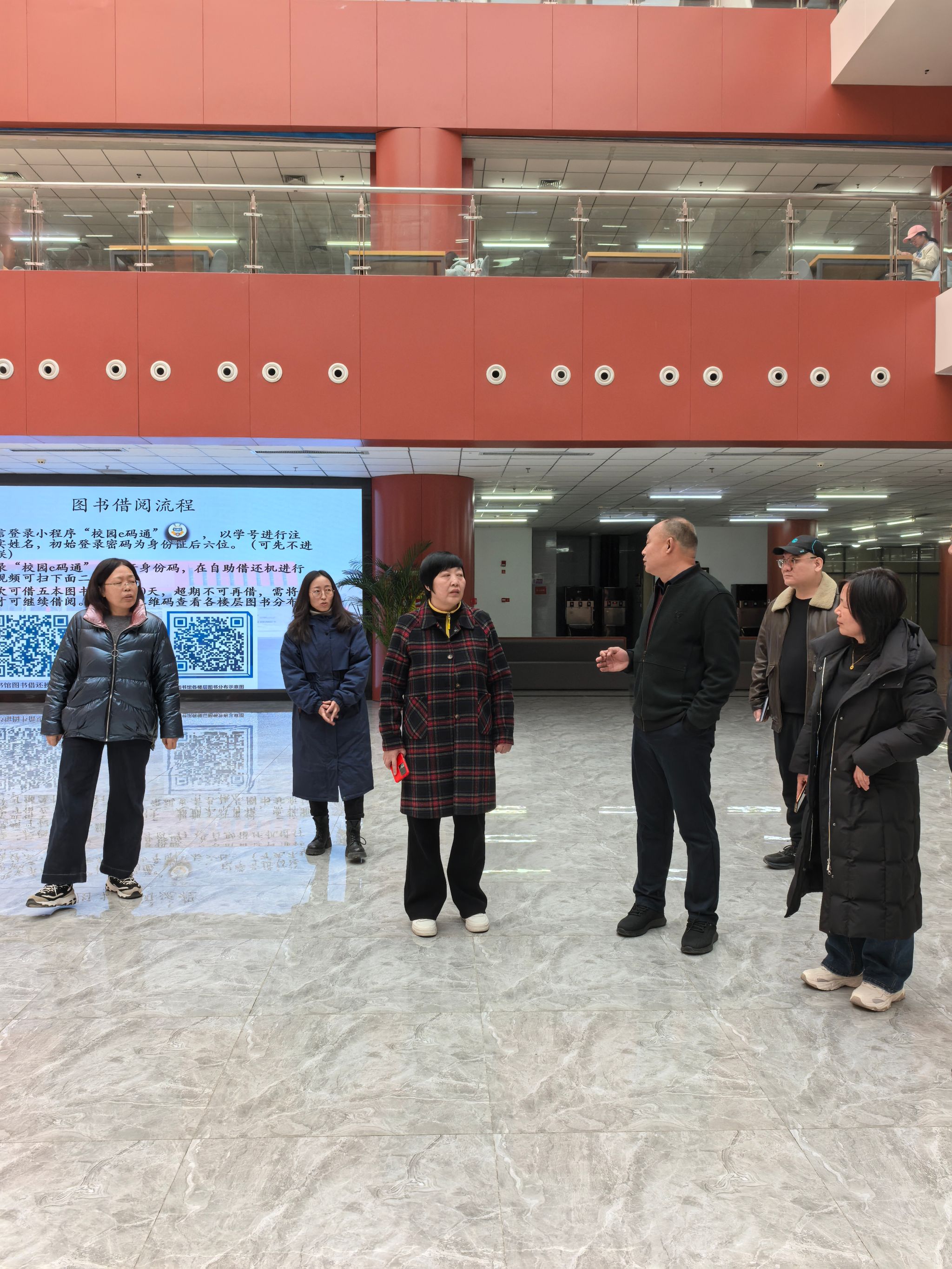 张利剑还实地查看了各楼层馆藏布局,并与值班馆员和部分读者进行了交流。张利剑指出,图书馆是服务师生教学科研的重要阵地,馆舍整洁、设备先进,是全省高水平的图书馆。希望全体馆员以馆为家“干一行,爱一行”,深耕本职,不断提升专业素养和服务水平,更好地为师生教学服务。