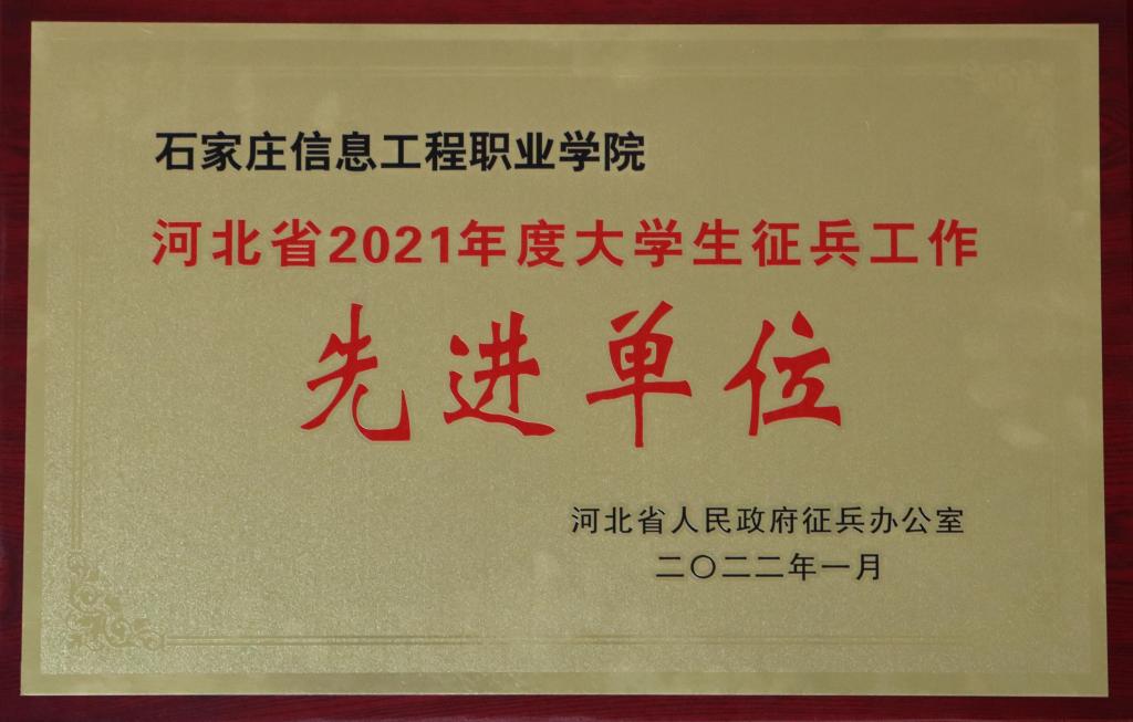 近日,河北省人民政府征兵办公室表彰通报了2021年度全省征兵工作先进单位和先进个人,YABO鸭脖官网被评为河北省2021年度大学生征兵工作先进单位。