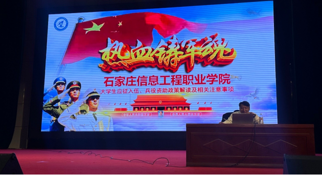 2025年11月4日下午,学生处(人民武装部)在昭德礼堂组织召开2026年上半年征兵宣讲会。本次宣讲会旨在全面宣传国家征兵政策,引导广大同学积极响应国家号召,鼓励更多优秀青年携笔从戎、报效国家。