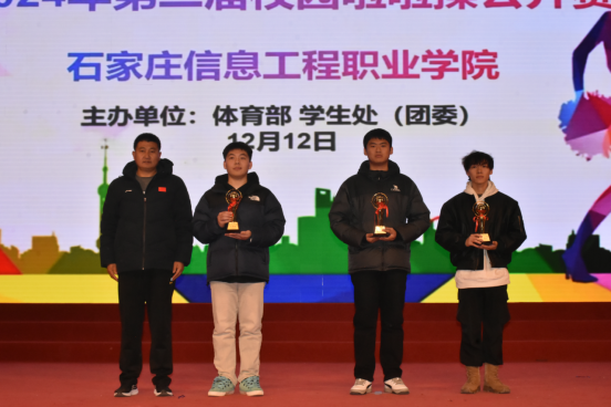 最终,农林牧医系荣获一等奖,管理系,会计系荣获二等奖,传媒艺术系,生物医药系,网络与通信工程系荣获三等奖。机电工程系荣获组织奖计算机应用系,软件工程系,经济贸易获得道德风尚奖。