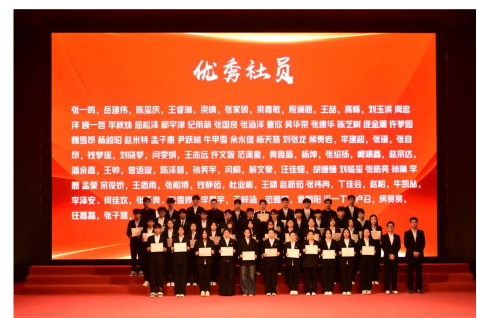 大会宣读了《院团委关于表彰2024年度优秀社团、优秀社长、优秀社员和优秀社团指导老师的决定》。决定授予国旗护卫队等13个社团“优秀社团”荣誉称号;授予周新雨等13名学生“优秀社长”荣誉称号;授予张一鸣等100名学生“优秀社员”称号;武斌等19名社团指导教师“优秀指导老师”荣誉称号。